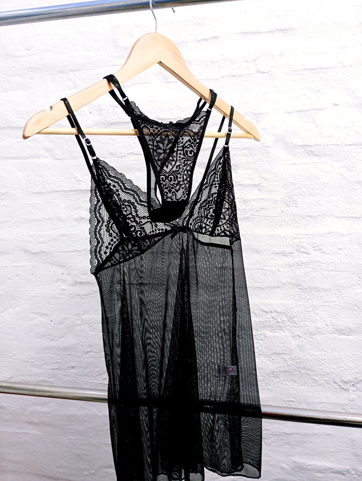 Babydoll con colales regulable negro + lubricante anal 75 ml